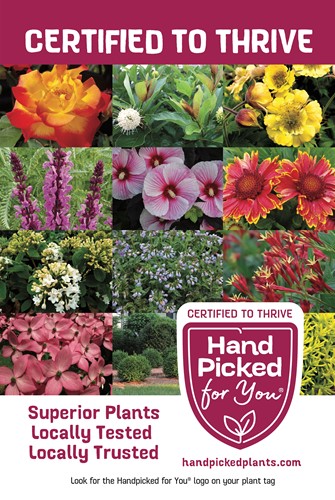 Handpicked for You® is a plant certification program, organized by a team of breeders, growers, and top independent retailers to rigorously identify top-performing perennials and shrubs in specific regional markets. We are committed to helping consumers become more successful with outdoor gardening by alleviating the fear of failure. The Handpicked for You® trust mark makes plant selection easy and fun by giving both enthusiasts and those who just enjoy spending time relaxing in the garden a simple way to find perennials, shrubs, and trees that are certified to thrive, and independently verified to be consistent top performers in their region. More time enjoying time in nature and the beauty of the plants and less time working in the garden!